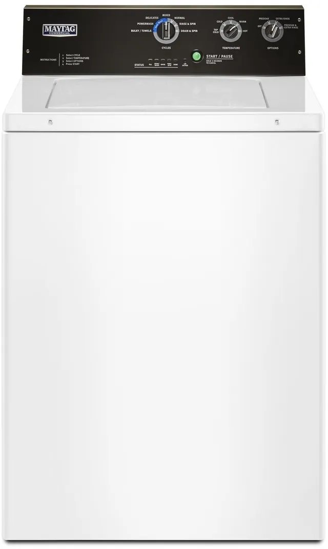 Bring rugged durability and commercial-grade washer performance to your laundry room. Delivered straight from the Maytag® commercial washer and dryer assembly lines, this washer features a robust build, including a dual action agitator and stainless steel wash basket, powered by a 1/2 horsepower washing machine motor. These components are encased within thick, galvanized steel paneling engineered to take a beating and resist corrosion. Four Deep Water Wash cycles, including the PowerWash® cycle, use maximum water levels to drench loads for thorough cleaning. Tough and dependable year after year, Maytag confidently backs this washer with our best home appliance warranty for in-home, commercial laundry equipment.Read More