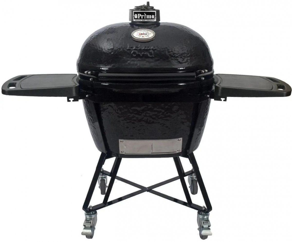 The Primo Oval XL 400 All-In-One is our most popular ceramic grill with the most cooking area. Grill, bake, roast or smoke any food. A great choice to cook for as little as two people or over 25 guests. Features include a cast iron top vent, easy-to-read thermometer, porcelain coated reversible cooking grates, and stainless steel draft door.Read More