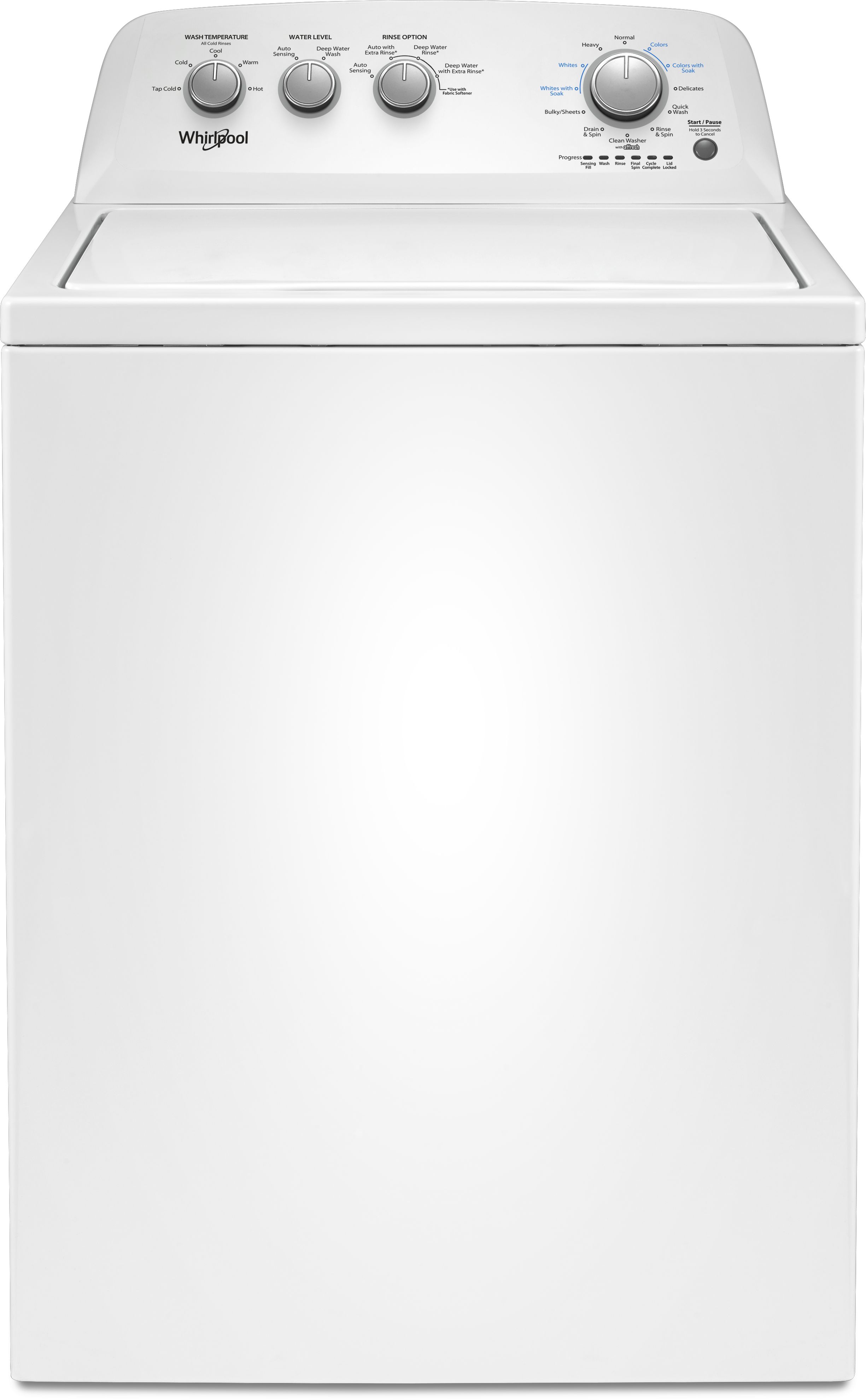| Washer Cycle Selections: | Bulky/Sheets, Clean Washer with affresh®, Colors, Colors with Soak, Delicates, Drain & Spin, Heavy Duty, Normal, Quick Wash, Rinse & Spin, Whites, Whites with Soak |